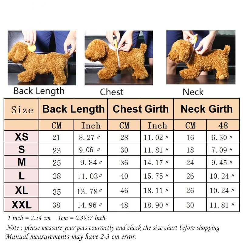 - For the two legs Clothes , pls pay attention to chest girth, And for four legs, must fit for chest girth and back length.